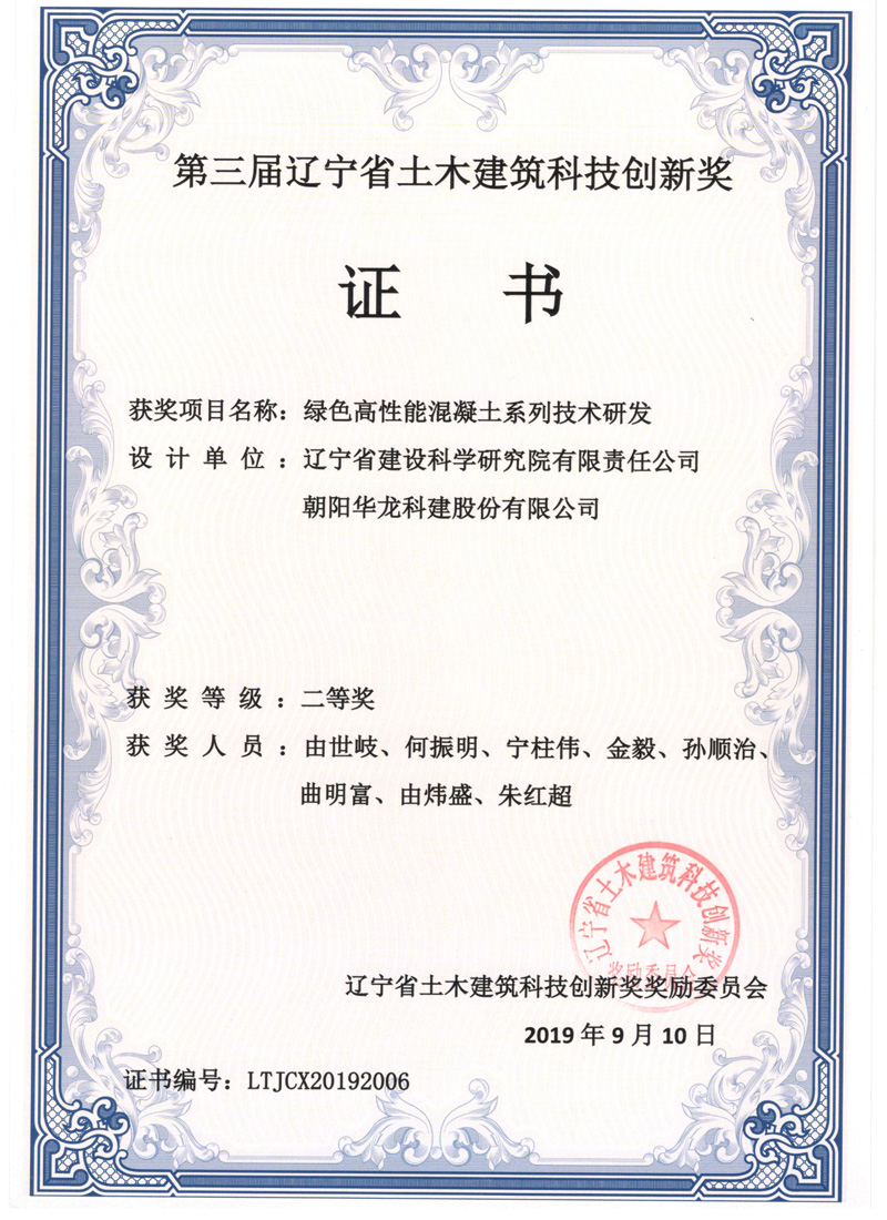 綠色高性能土木建筑學會科技創新二等獎