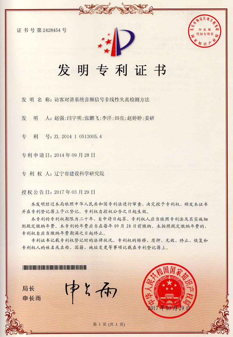 2017-訪客對講系統音頻信號非線性失真檢測方法