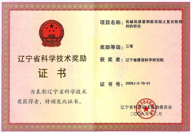 2009省三等-低堿低摻量鋼筋混凝土復(fù)合阻銹劑的研究
