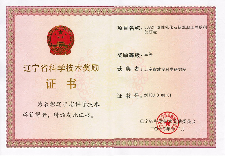 2010省三等-LJ321改性乳化石蠟混凝土養(yǎng)護(hù)劑的研究