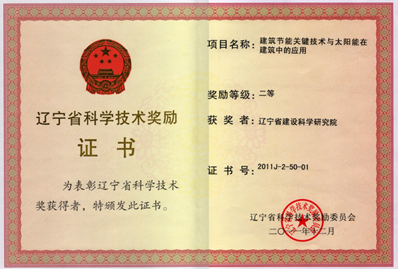 2011省二等-建筑圍護(hù)結(jié)構(gòu)院證書